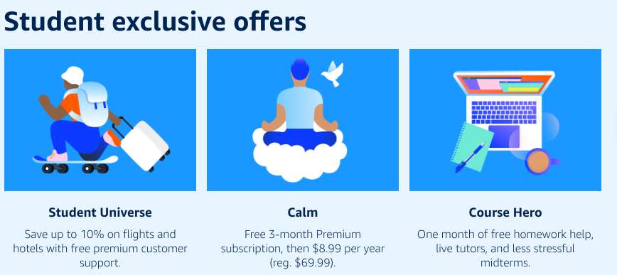 Öğrenci Prime üyeliği, öğrencilere standart bir Prime üyeliği ile aynı avantajları sunar. Bunlar arasında hızlı ve ücretsiz kargo, Prime Video platformunda binlerce film ve diziye erişim, Prime Music'te müzik dinleme, Kindle Bedava Kitaplar Programı'ndan yararlanma ve daha fazlası bulunur.